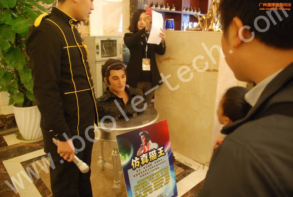 按照已故天王巨星“貓王”外表設(shè)計(jì),1:1還原,無論是發(fā)型、臉型、皮膚,甚至是衣服也頗有當(dāng)代歌星的特征!高仿真機(jī)器人“貓王”主要有兩大功能:唱歌,說話。通過遙控器控制,可讓機(jī)器人唱歌,期間機(jī)器人頭部會擺動,嘴巴會張合,甚至連眼睛、眉毛、嘴角等細(xì)節(jié)動作也能突顯出來!