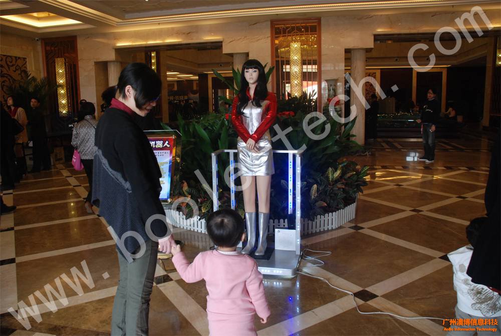 按照標(biāo)準(zhǔn)1.7米人體比例設(shè)計(jì),擁有靚麗外表,當(dāng)游客經(jīng)過的時候,還會鞠躬問候,加上絢麗的LED站臺,讓人眼前一亮。有興趣的朋友還可以拿起麥克風(fēng)與美女迎賓機(jī)器人對話呢!