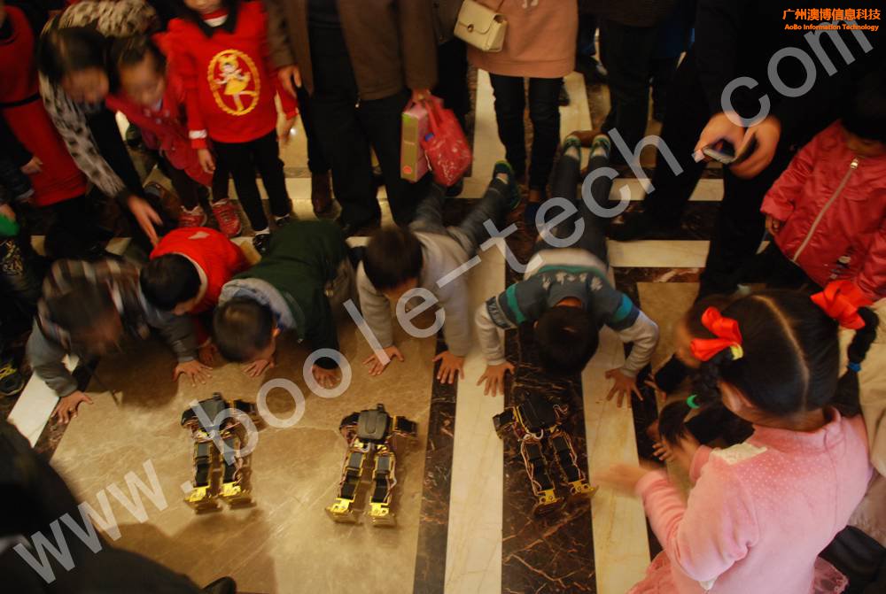 孩子們正在與機(jī)器人一起做仰臥起坐,看看誰做得更快!
