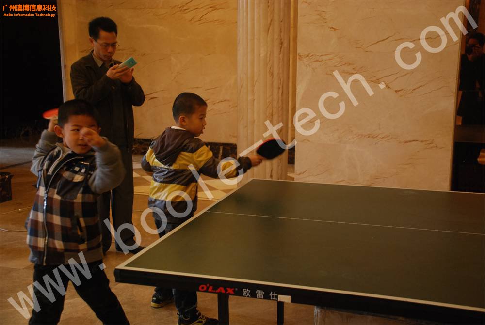孩子們與乒乓球機(jī)器人PK